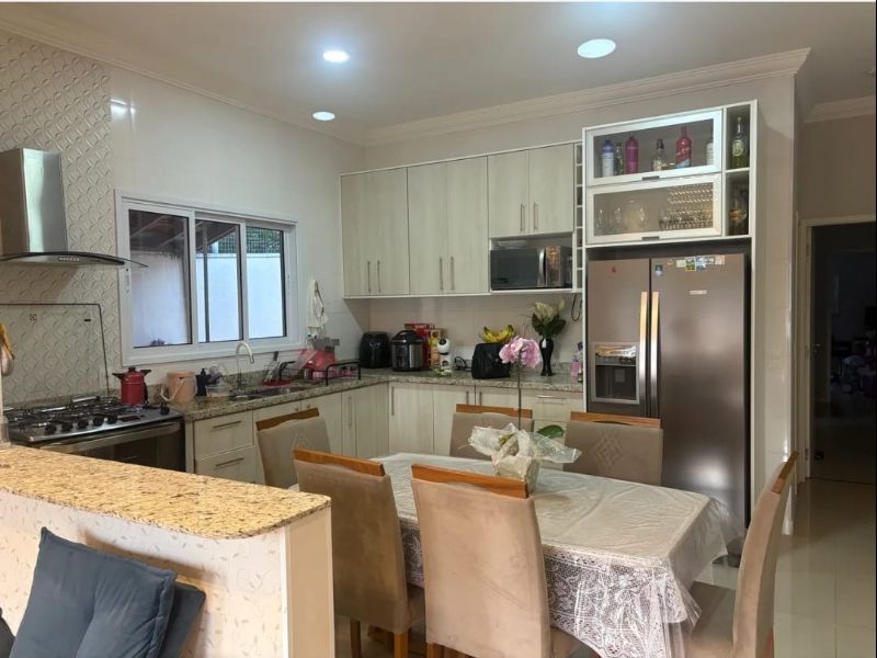 EXCELENTE CASA TÉRREA COM 03 DORMITÓRIOS, SENDO 01 SUÍTE PLANEJADA, SALA DE ESTAR INTEGRADA COM COZINHA, COZINHA PLANEJADA, ÁREA DE SERVIÇO, ESPAÇO GOURMET, LAVABO, 03 WC, 02 VAGAS DE GARAGEM.