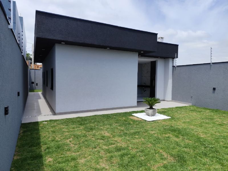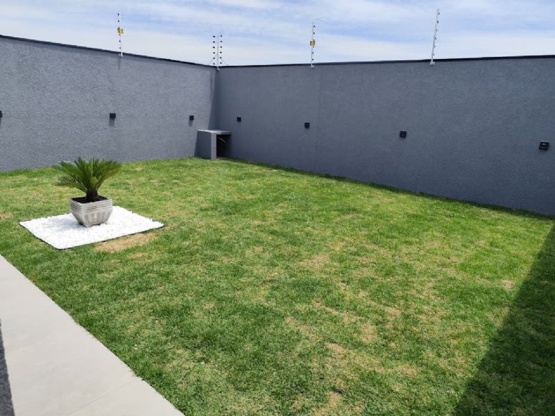 EXCELENTE CASA TÉRREA E NOVA COM 03 DORMITÓRIOS, SENDO 01 SUÍTE, WC SOCIAL, SALA DE ESTAR COM PÉ DIREITO ALTO INTEGRADO COM A SALA DE JANTAR E COZINHA, LAVANDERIA, ÁREA GOURMET, QUINTAL, 02 VAGAS DE GARAGEM E CERCA ELÉTRICA.