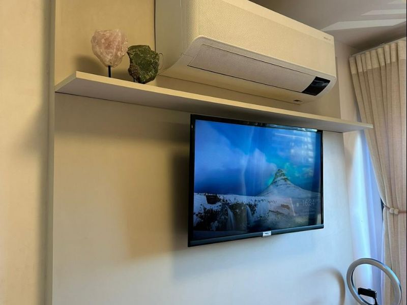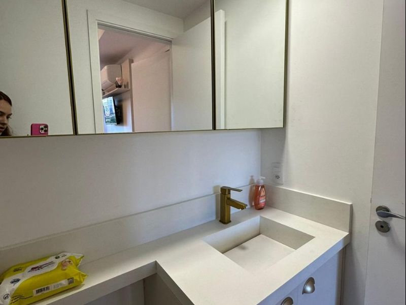 APARTAMENTO MOBILIADO, 1 DORMITÓRIO PLANEJADO COM CAMA DE CASAL AR- CONDICIONADO, TV, SALA COM RACK TV, BANQUETAS, SACADA GOURMET, COZINHA PLANEJADA COM MICRO-ONDAS, GELADEIRA, WC COM BOX DE VIDRO CHUVEIRO A GÁS, GARAGEM COBERTA, CONDOMÍNIO COM PISCINA, ACADEMIA, PORTARIA 24HS